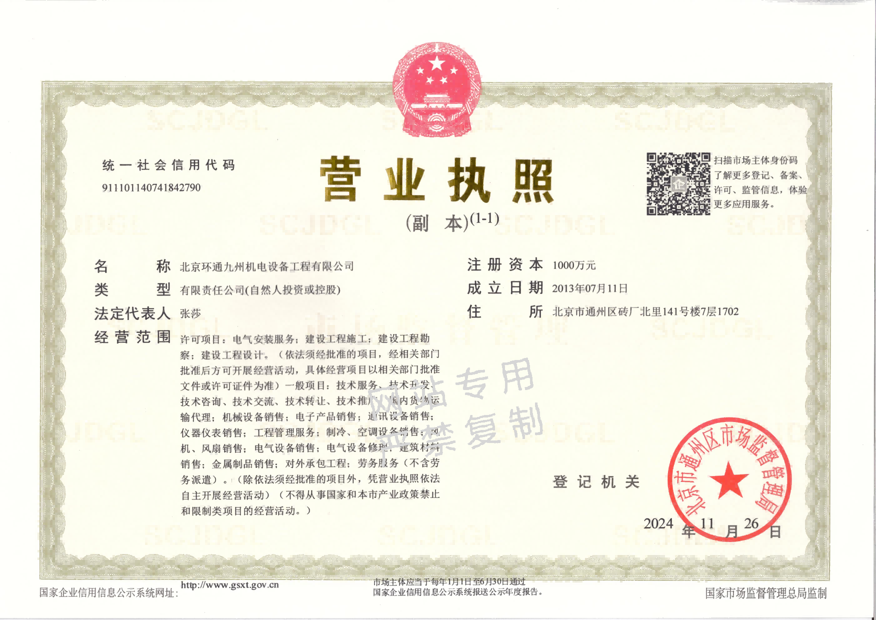 北京总公司营业执照